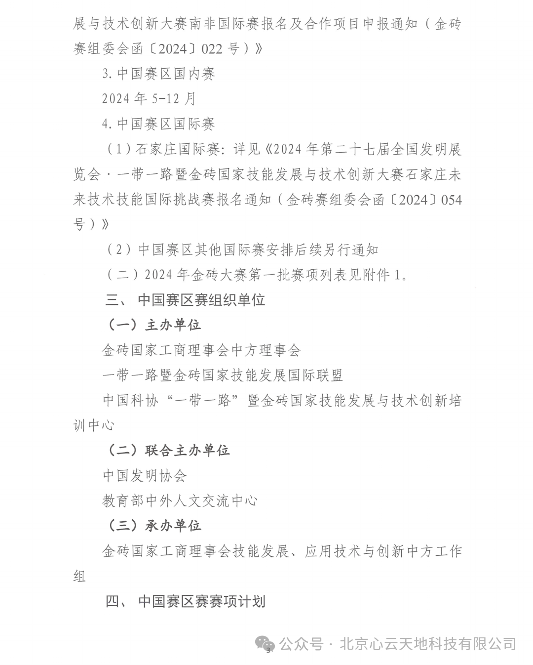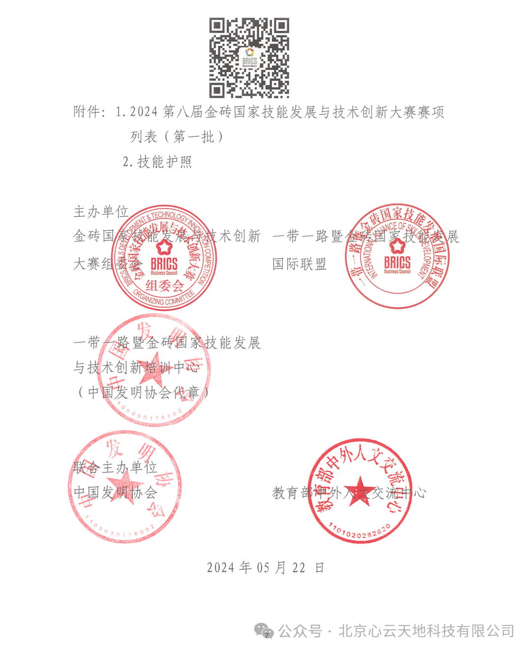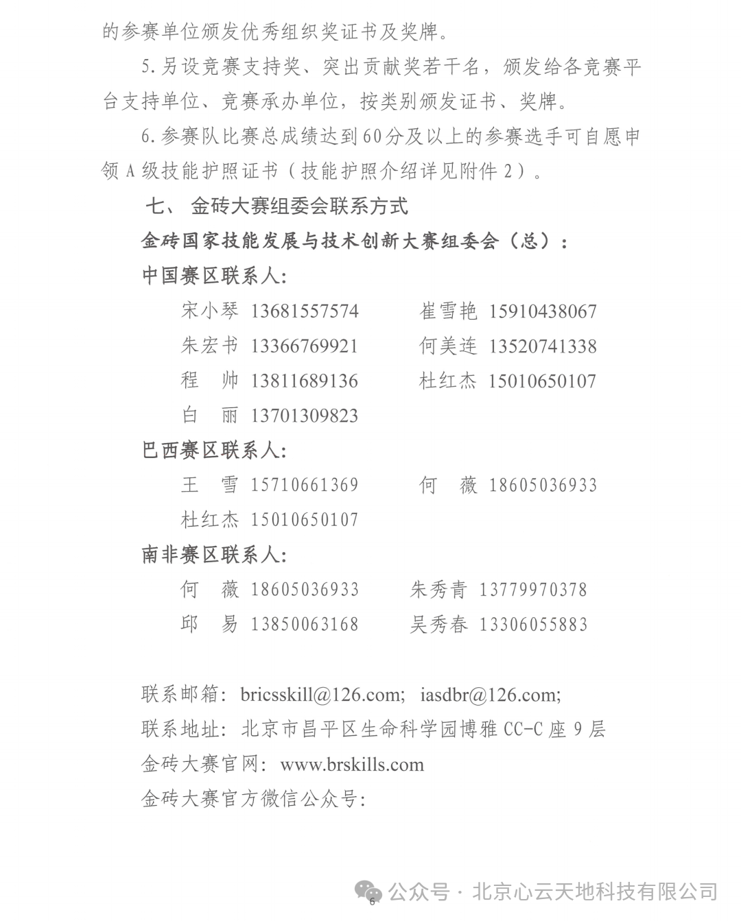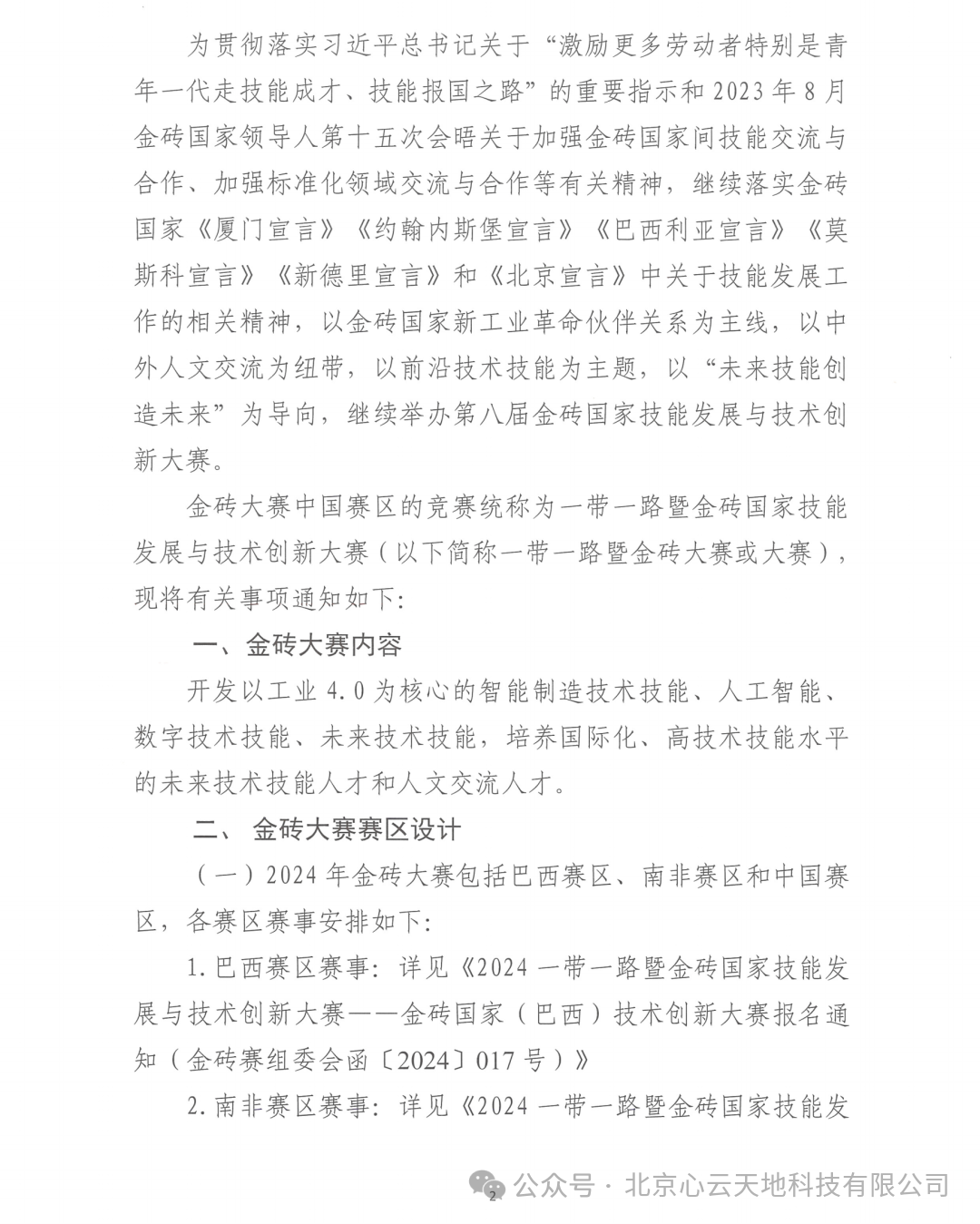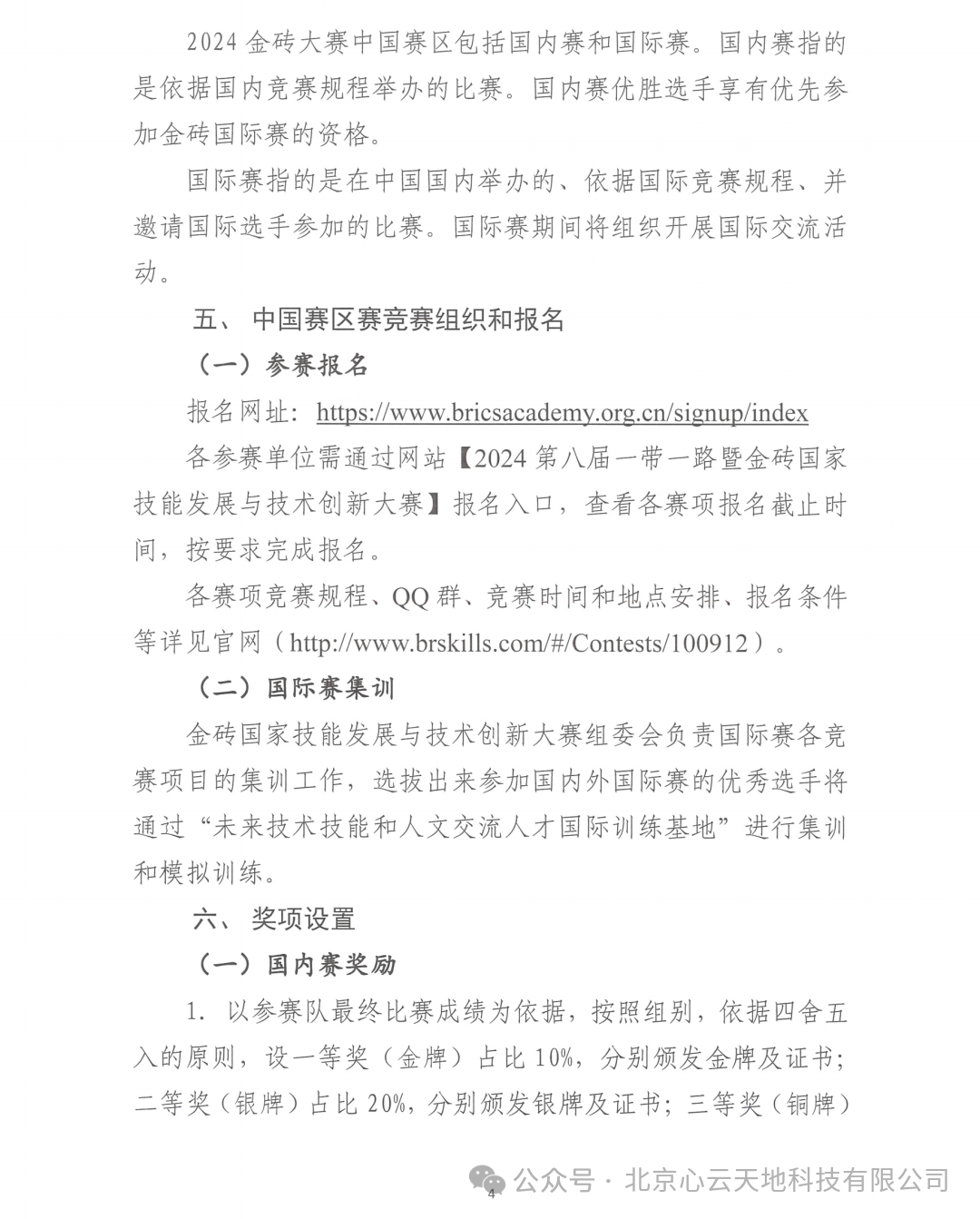 技术规程:关注“北京心云天地科技有限公司”公众号,点击菜单栏“金砖大赛”获取赛项技术规程。