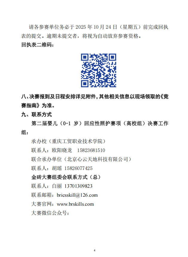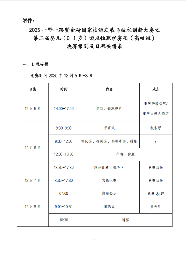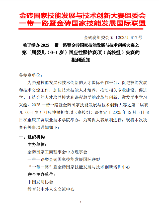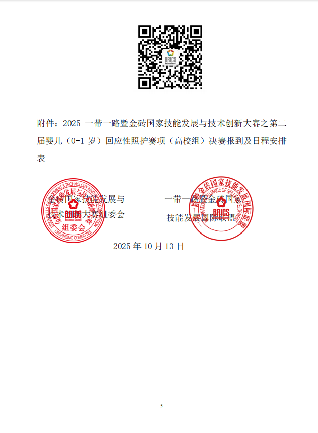 竞赛通知 | 关于金砖大赛第二届婴儿(0-1岁)回应性照护赛项(中职组、教师组)决赛报到通知!