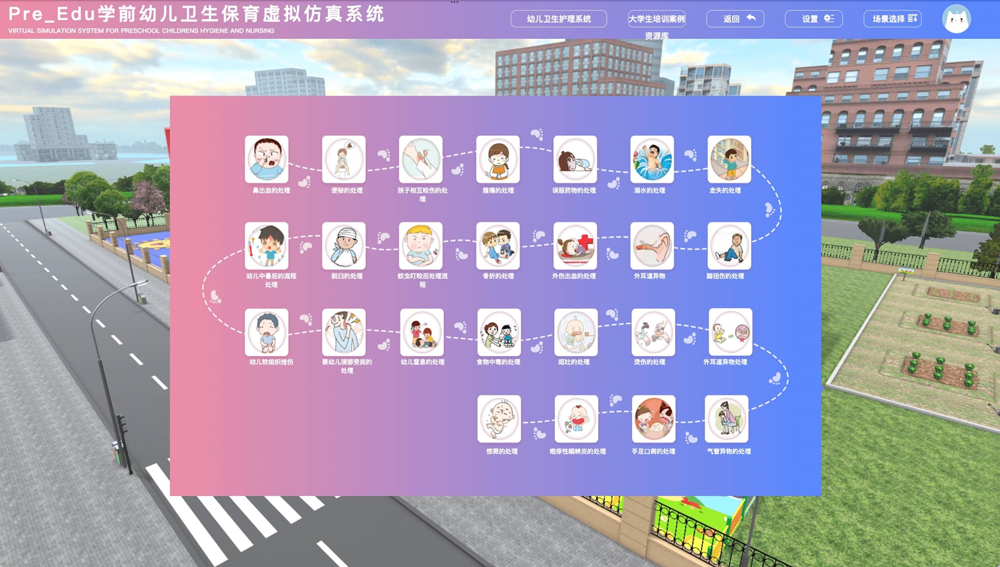 Pre_Edu学前幼儿卫生保育虚拟仿真教研系统是一款专为高校教师设计的教学工具,旨在通过虚拟仿真技术,帮助学生掌握学前幼儿卫生保育的核心知识与实践技能。系统以高度仿真的幼儿园场景为基础,结合互动操作与情景模拟,实现理论与实践的无缝结合,为高校“学前幼儿卫生保育”课程提供创新性教学解决方案。