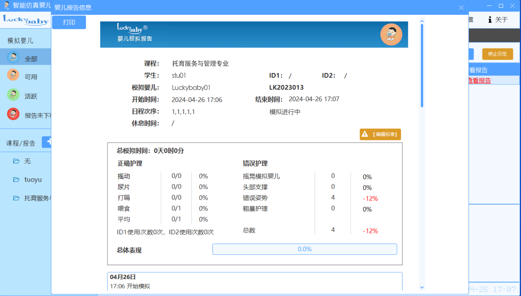 用于仿真婴儿的任务发送和数据接收,配合Luckybaby®仿真婴儿在实训场景的教学研究,模拟各种回应性照护场景及照护技能